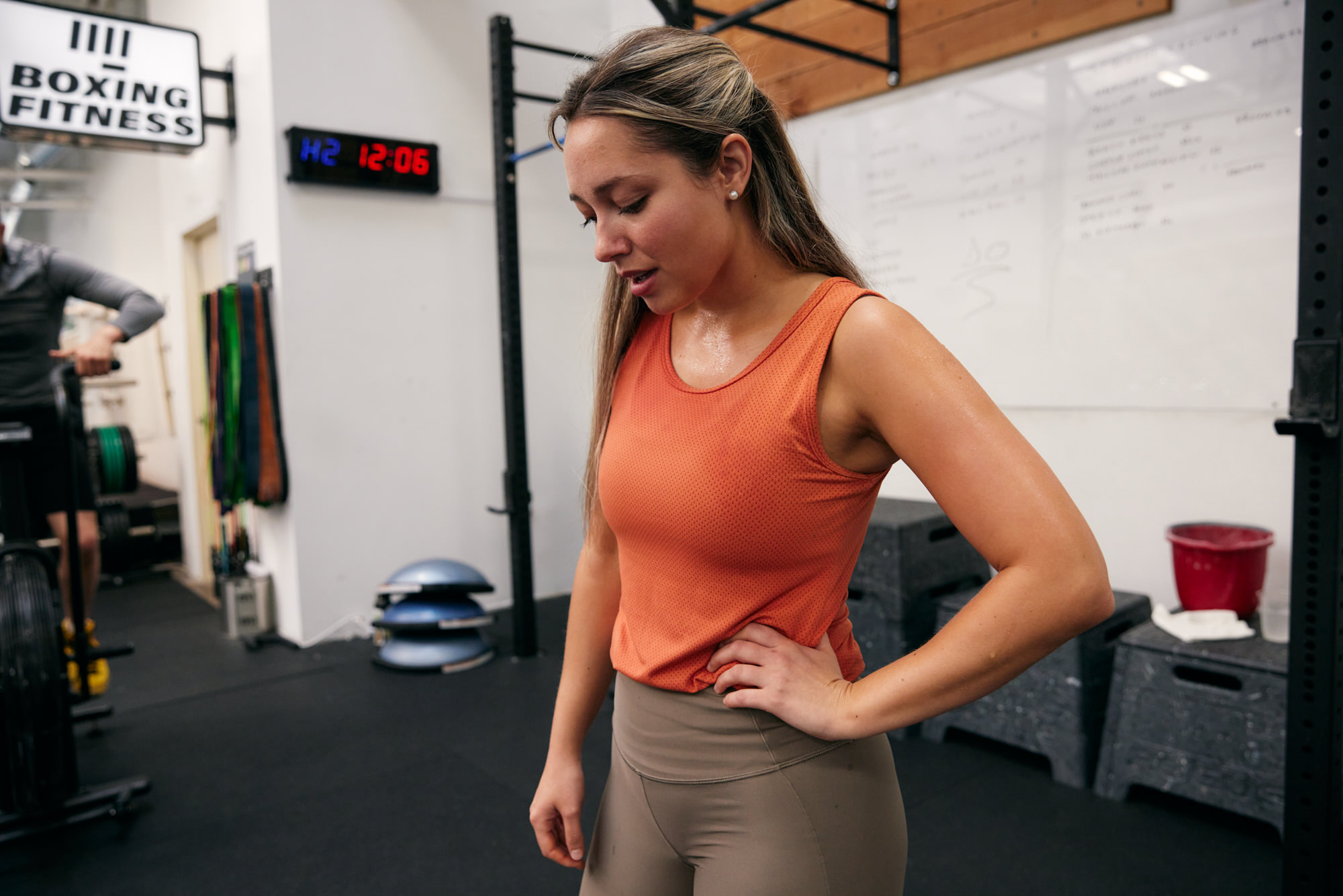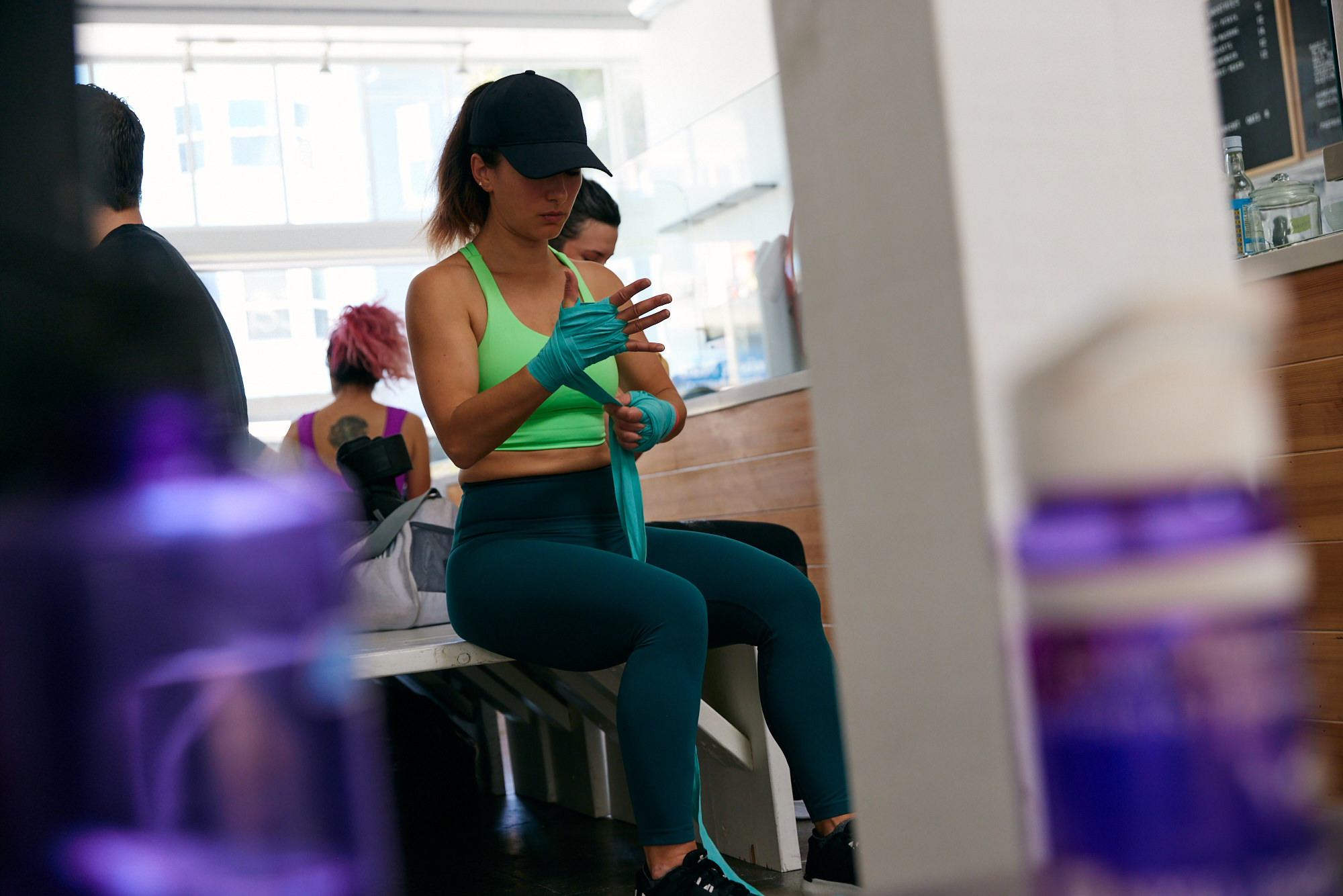 Fast forward 4 months later. David loved what he saw from those first two shoots and wanted to bring Anthony on board to shoot a campaign for the gym. The goal was to highlight the variety of fitness and boxing classes the gym offers along with Contender Cafe in the front. Given complete creative freedom, Anthony wanted to keep things as authentic to the gym by capturing members hanging out at the cafe, getting ready for their class, variety of lifts and movements, and all the little details in between.  Anthony captured a mix of emotion throughout the gallery. From your more intense moments mid session to the post workout laughs you can hear echoing through the gym. Wanting to keep things nimble with the fast paced classes, Anthony kept production lean relying heavily on the natural light coming into the gym accompanied by a single 1200W mono-light bouncing off the walls/ceiling to freeze each frame and a little bit of specularity to the images.